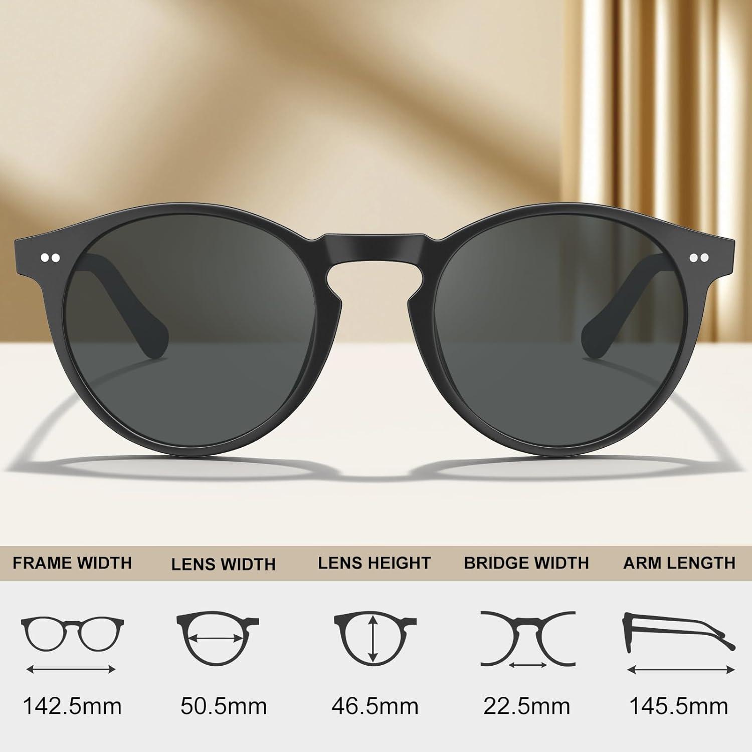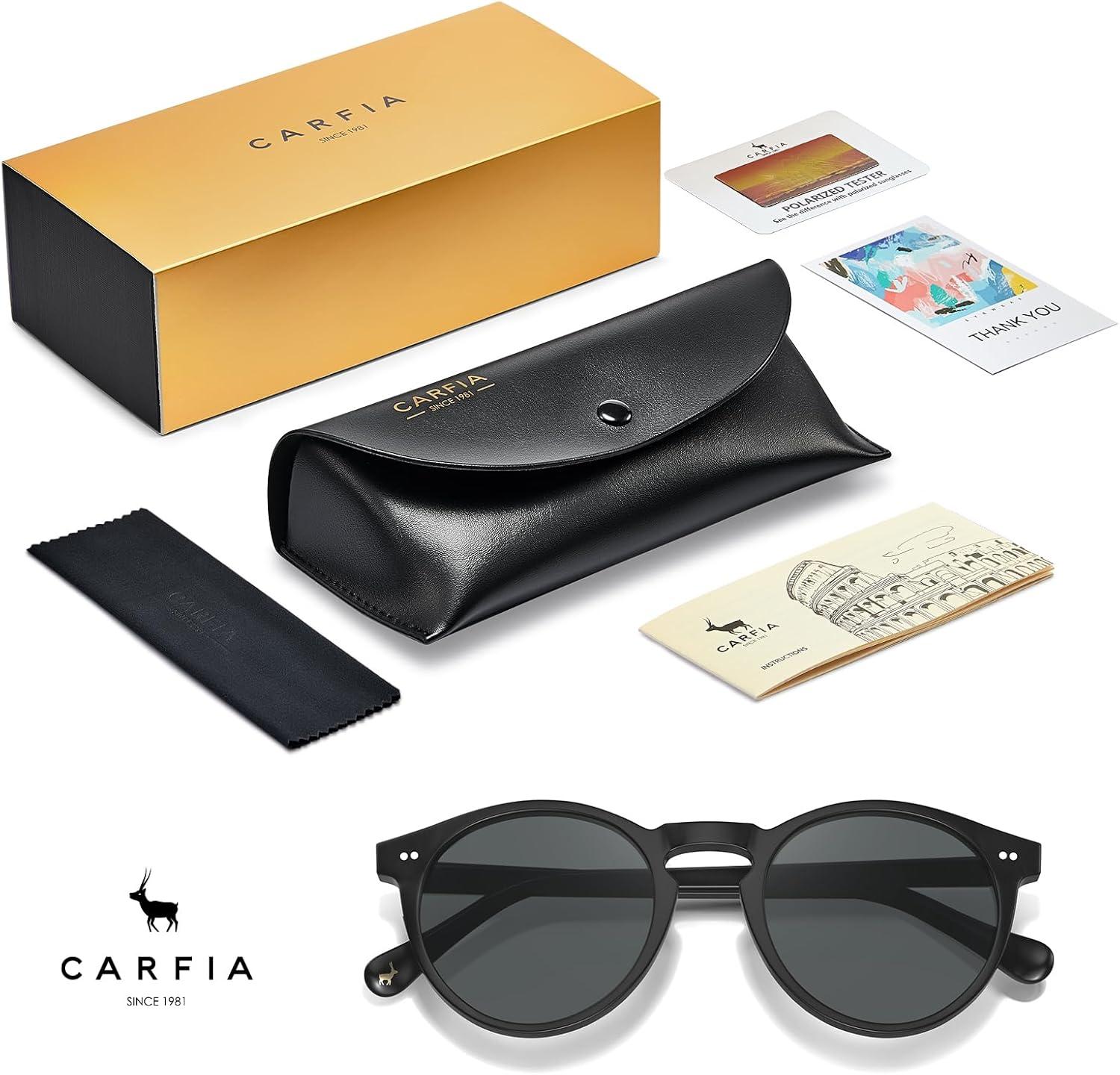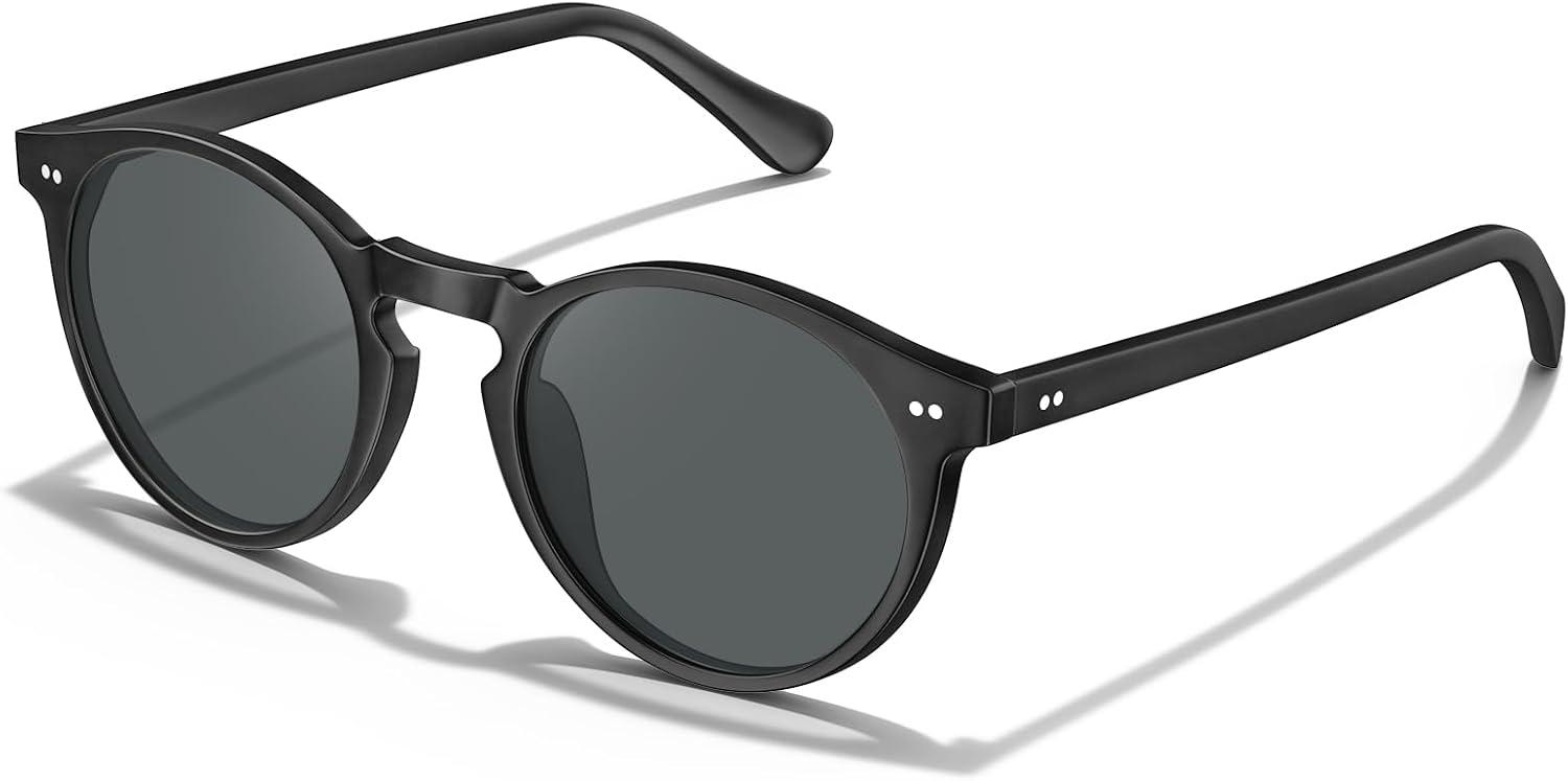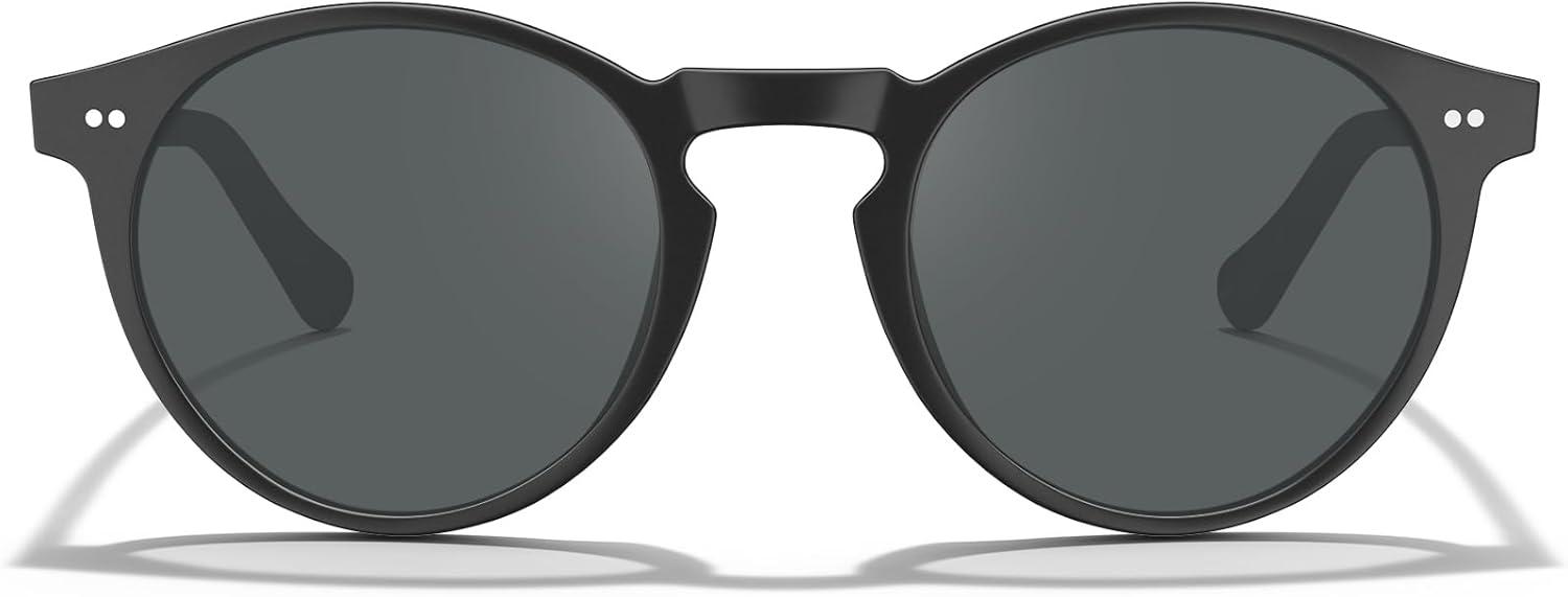 CARFIA Acetate Vintage Round Polarized Sunglasses for Men UV400 Lenses Hand-crafted Frame(1. Matte Black Frame / Grey Lens)