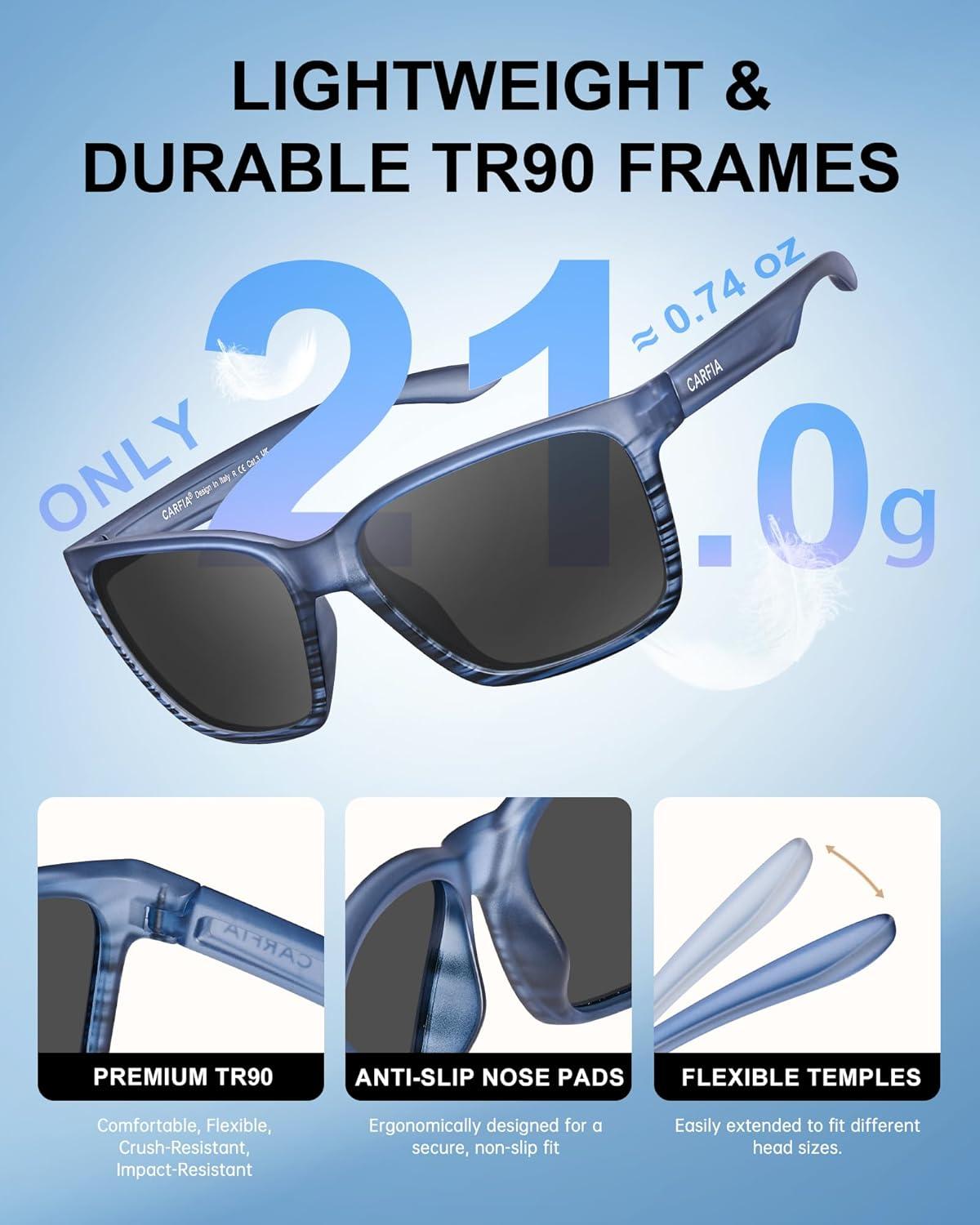 Be the first to review “CARFIA Casual Polarized Mens Sunglasses UV400 Protection, Lightweight Unbreakable TR90 Sports Cycling Fishing Glasses CA0951(C: Matte Stripe Frame Gray Lens)”