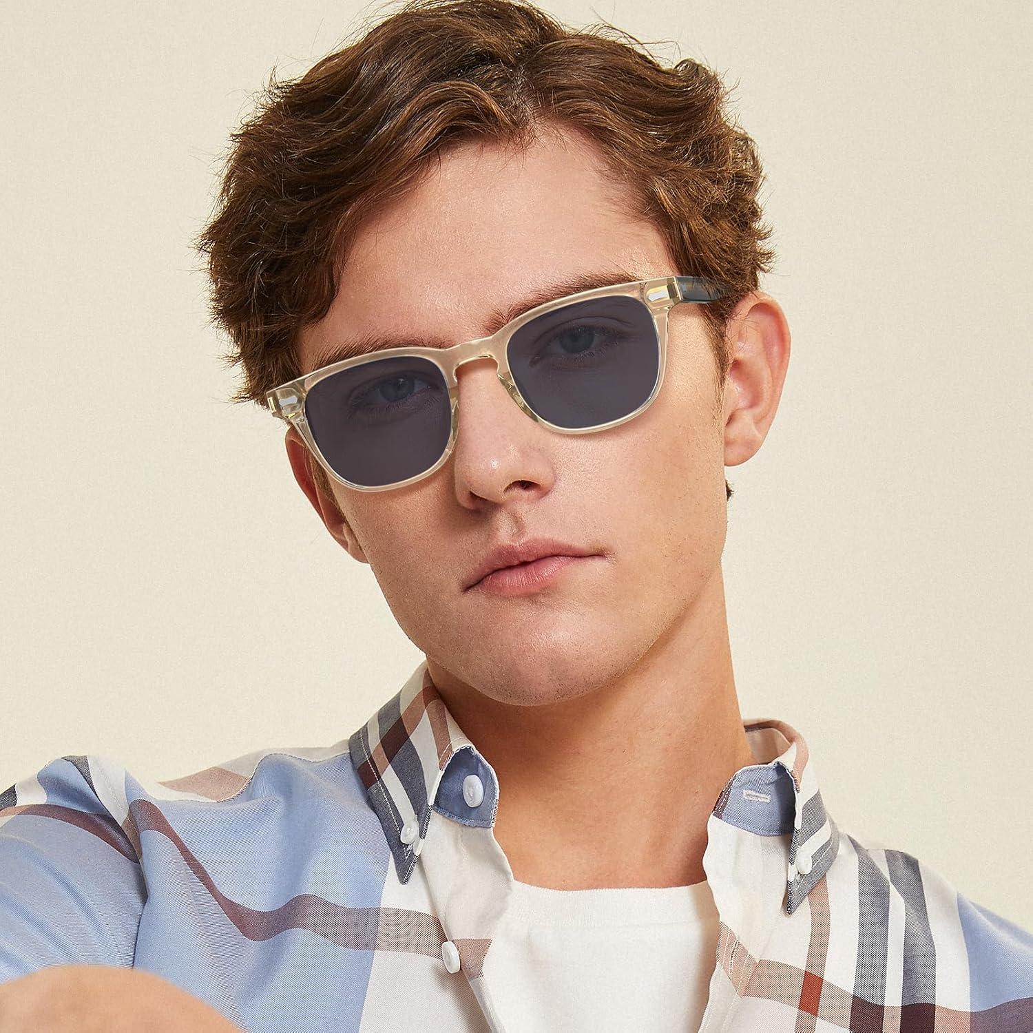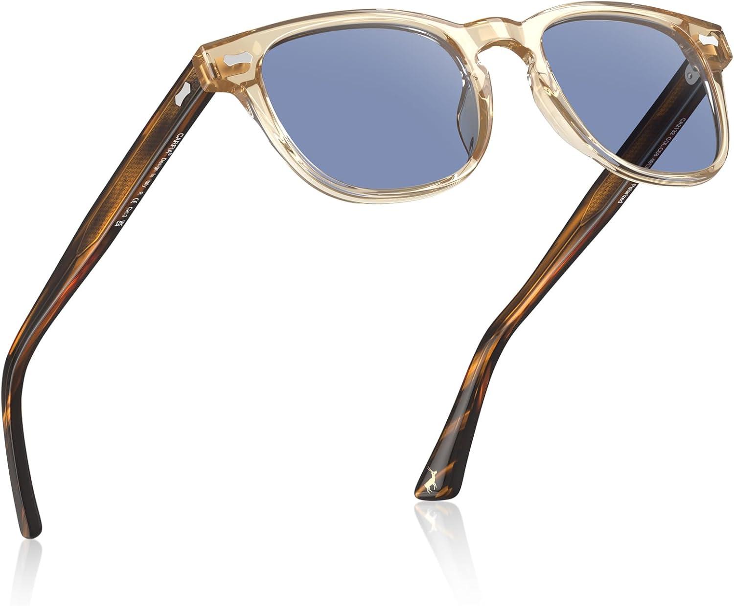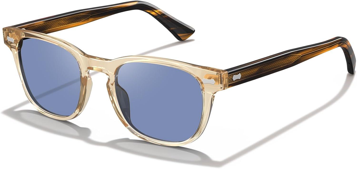 CARFIA Modern Retro Polarized Sunglasses for Men Hand-crafted Acetate Frame Classic Square Sun Glasses CA2132(5. Clear Coffee Frame Blue Lenses)