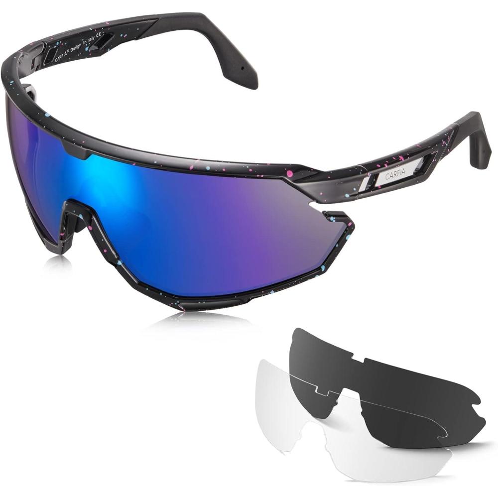 imageCARFIA Polarized Cycling Sunglasses for Men  3 Interchangeable Lenses UV400ShockproofHD Vision CA5390C01  Grey Polarized Lens  Red Mirror  Clear Lens