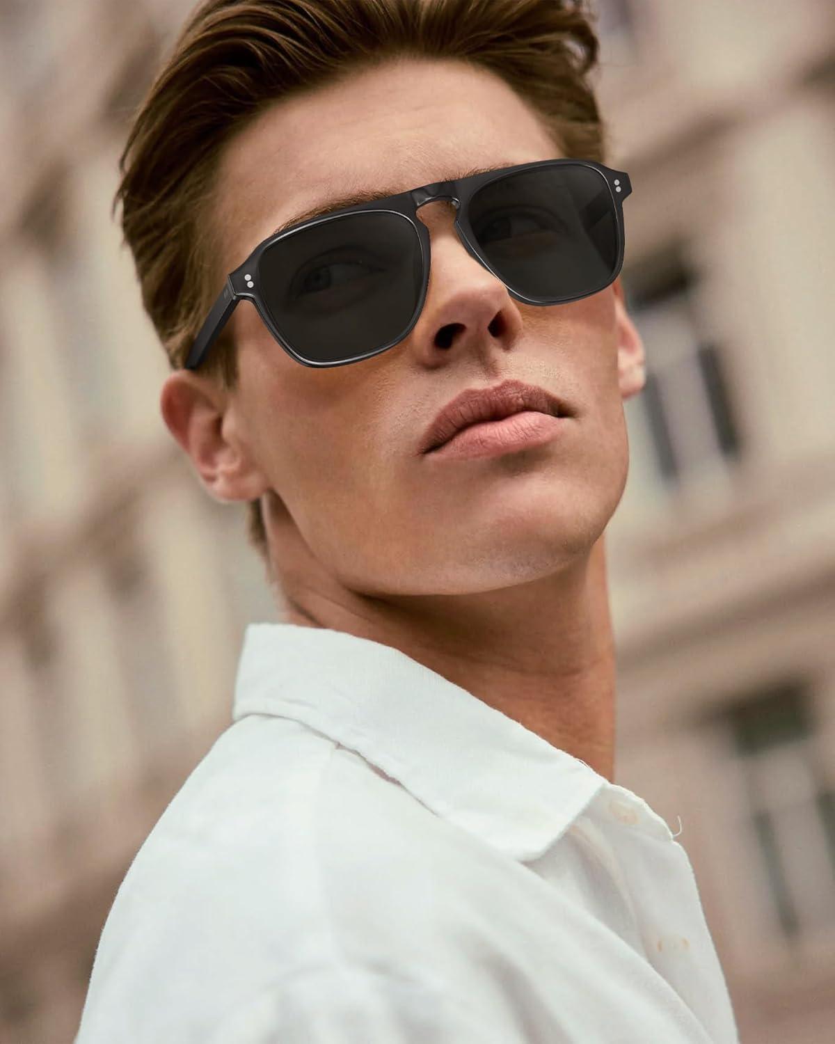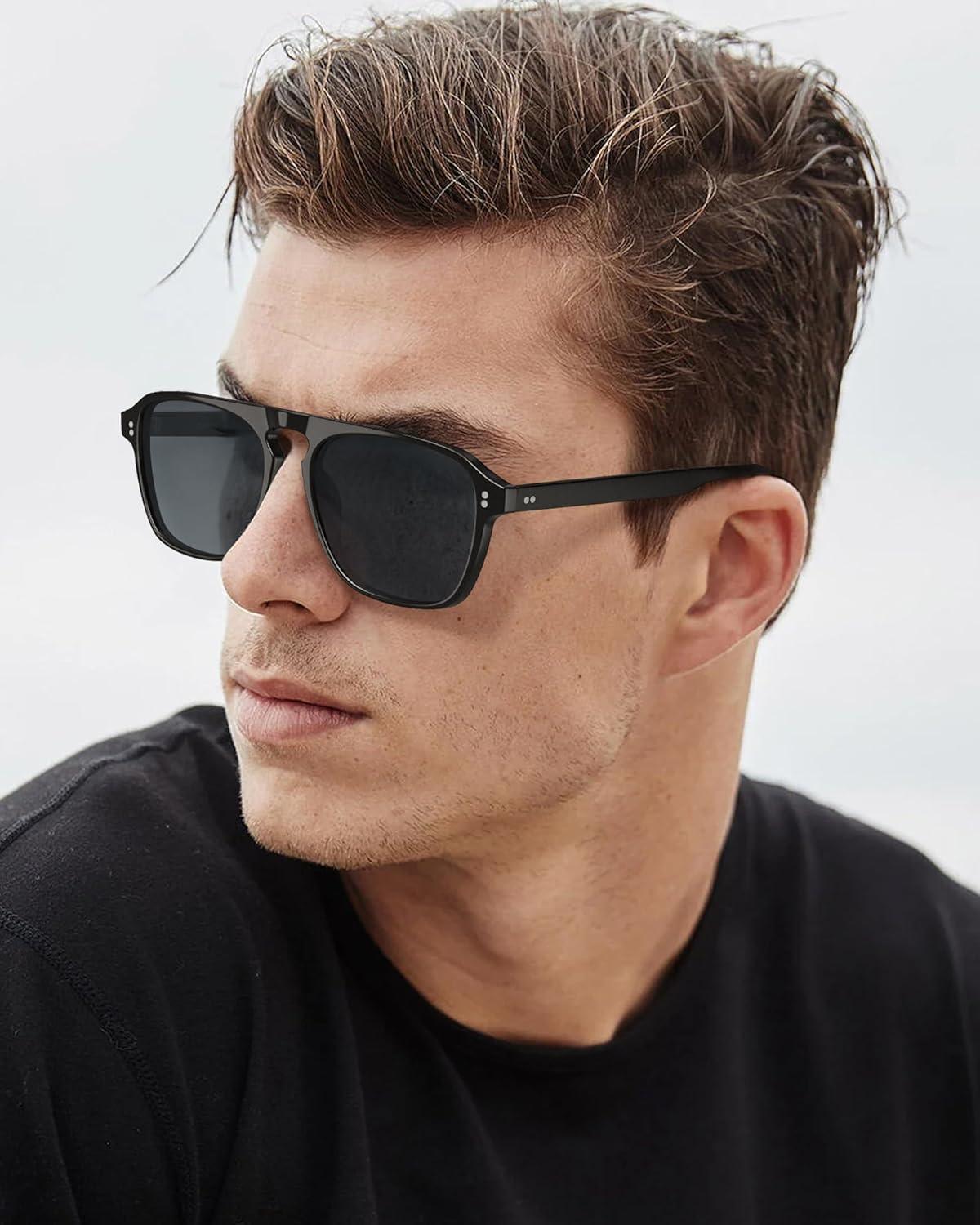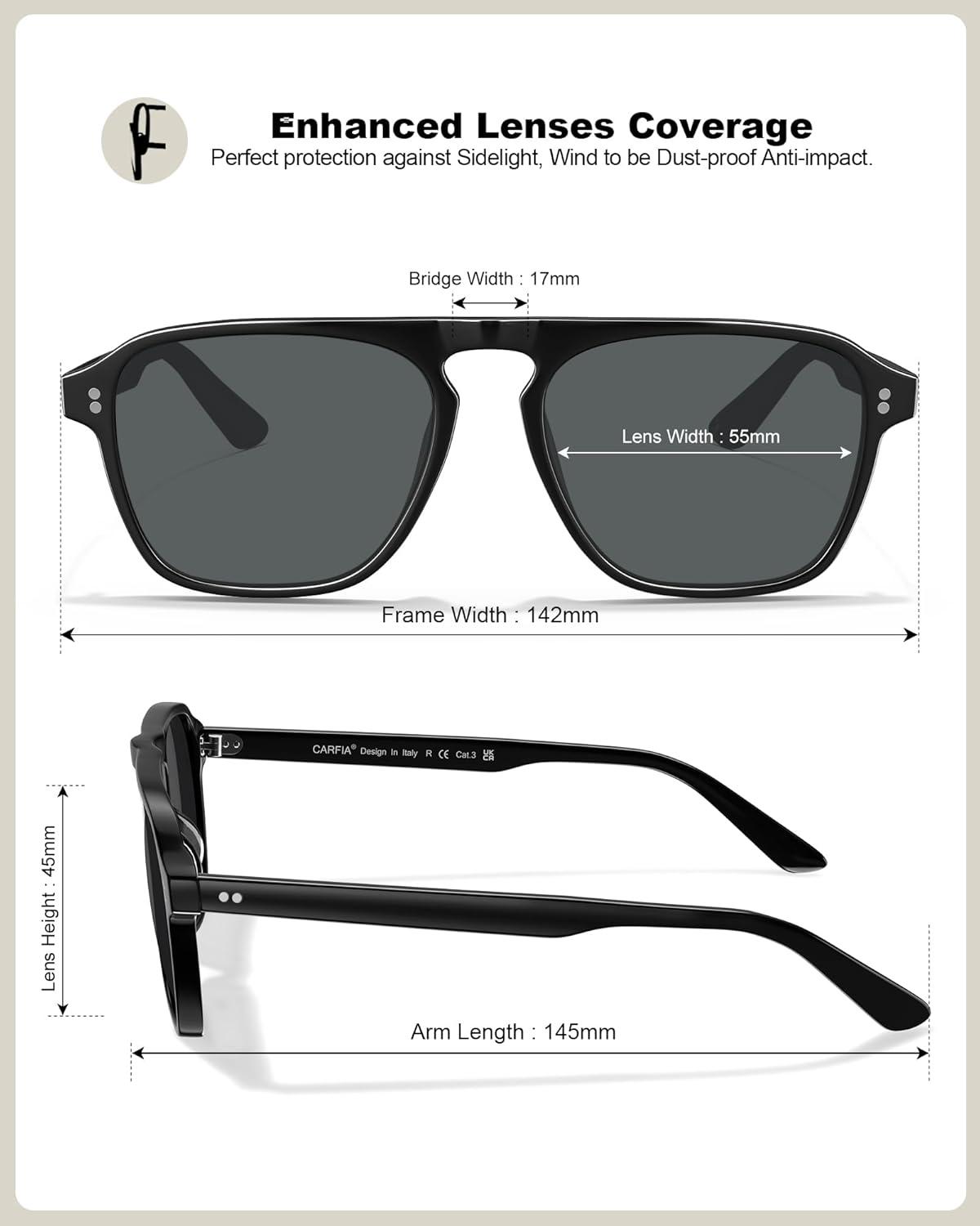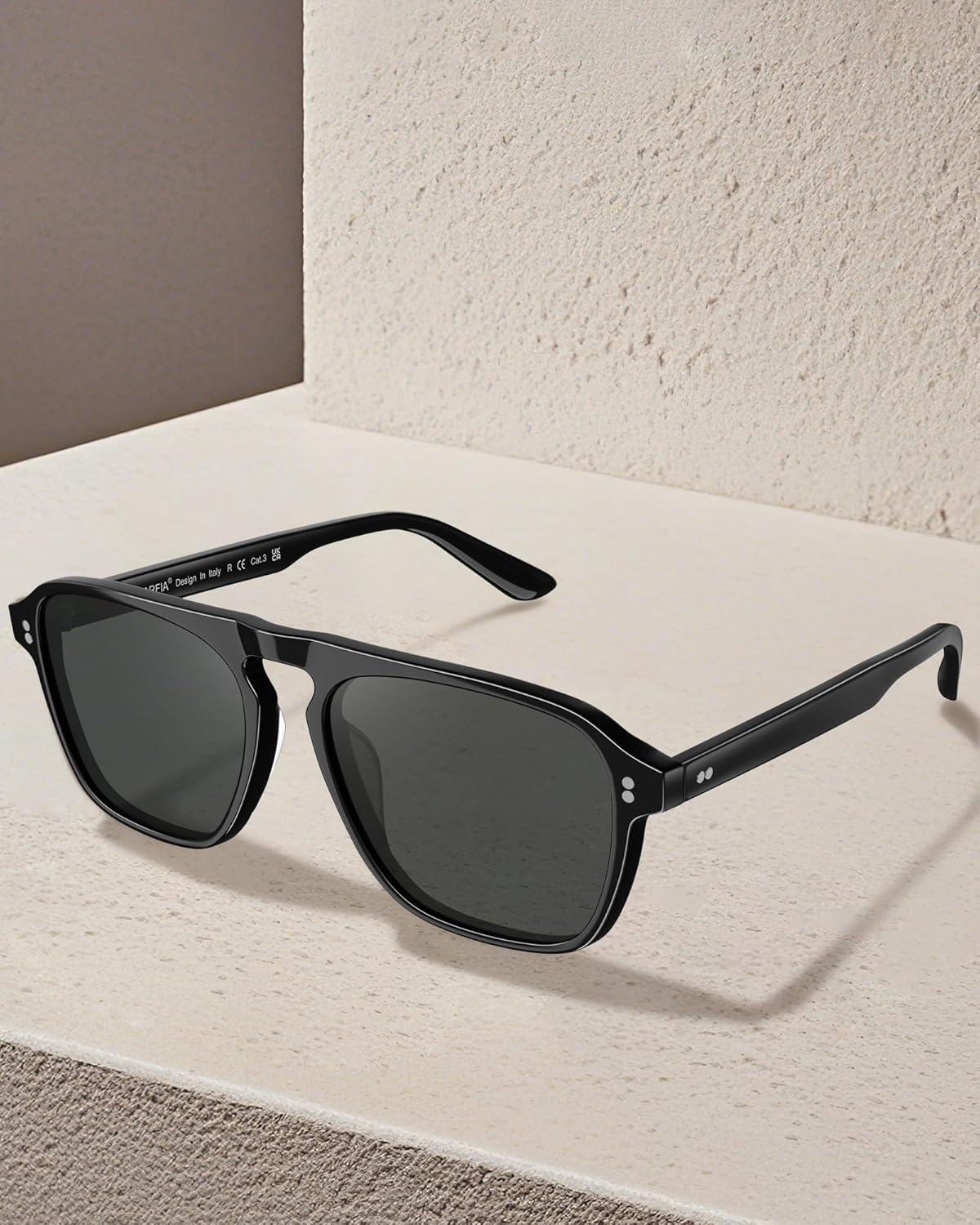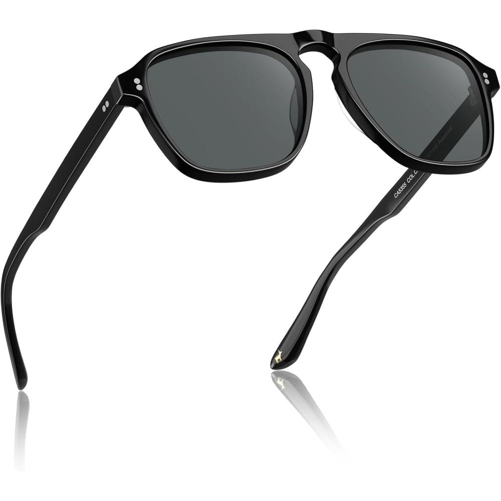 CARFIA Polarized Sunglasses for Men UV400 Protection - Pilot Design Acetate Sun Glasses for Driving Fishing Outdoor CA5355(5. Black Frame Grey Lens)