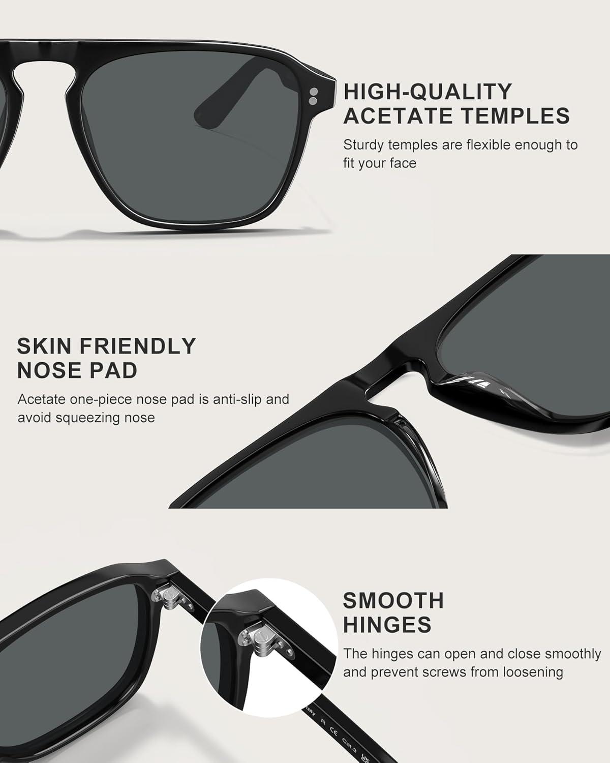CARFIA Polarized Sunglasses for Men UV400 Protection – Pilot Design Acetate Sun Glasses for Driving Fishing Outdoor CA5355(5. Black Frame Grey Lens)
