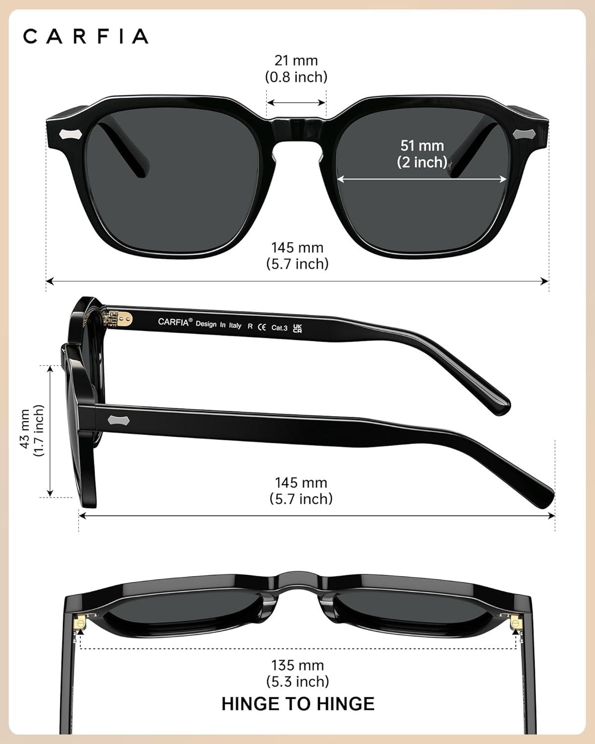 Be the first to review “CARFIA Polarized Sunglasses for Men UV400 Protection, Retro Sun Glasses with Acetate Square Frame for Driving Fishing CA5405(D. Black Frame Gray Lens)”