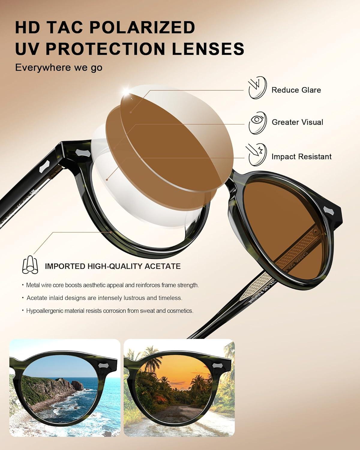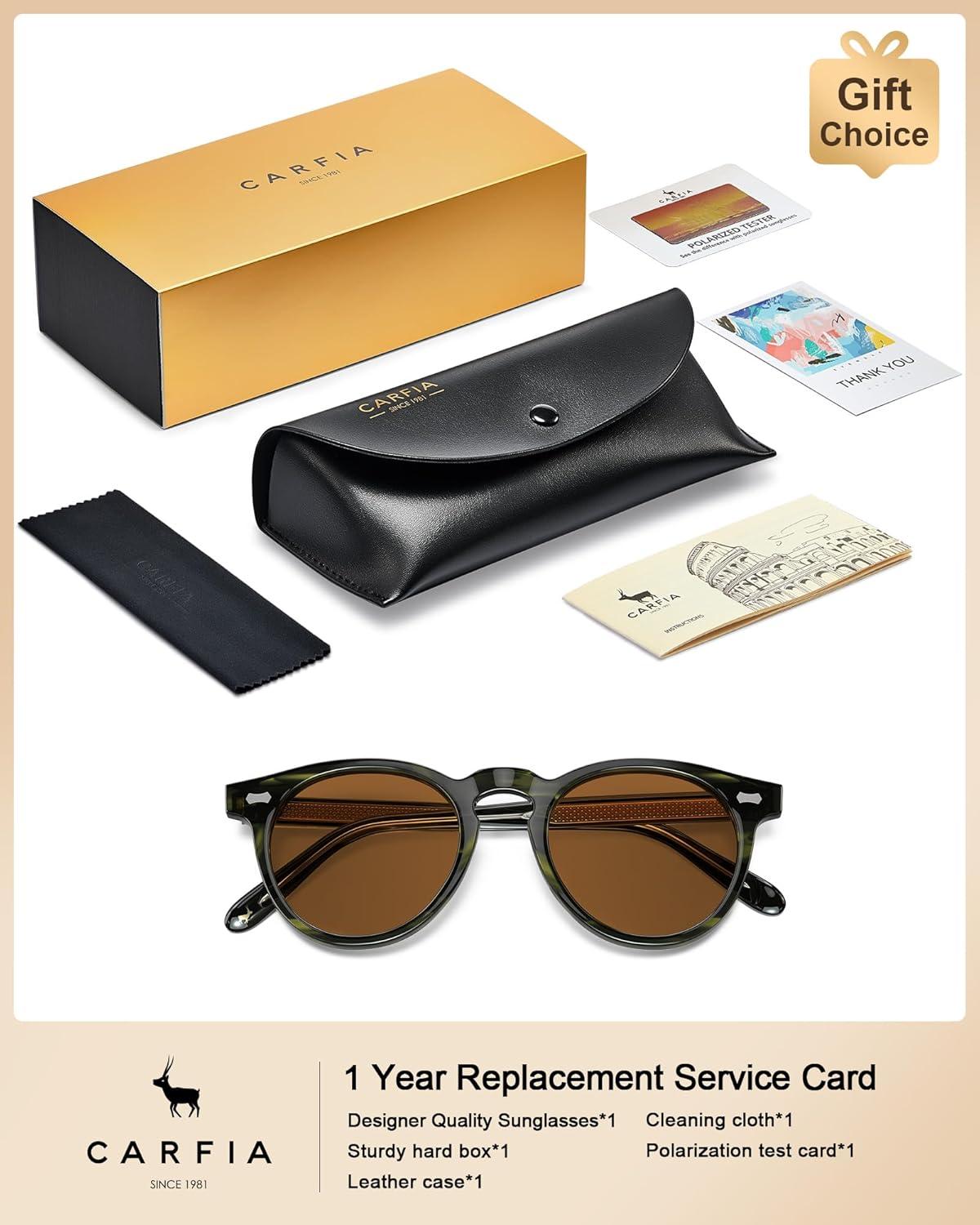 Be the first to review “CARFIA Retro Acetate Polarized Sunglasses for Men UV Protection, Vintage Round Frame Eyewear with Gold Filigree CA5506(F: Green Black Swirled Frame Brown Lens)”
