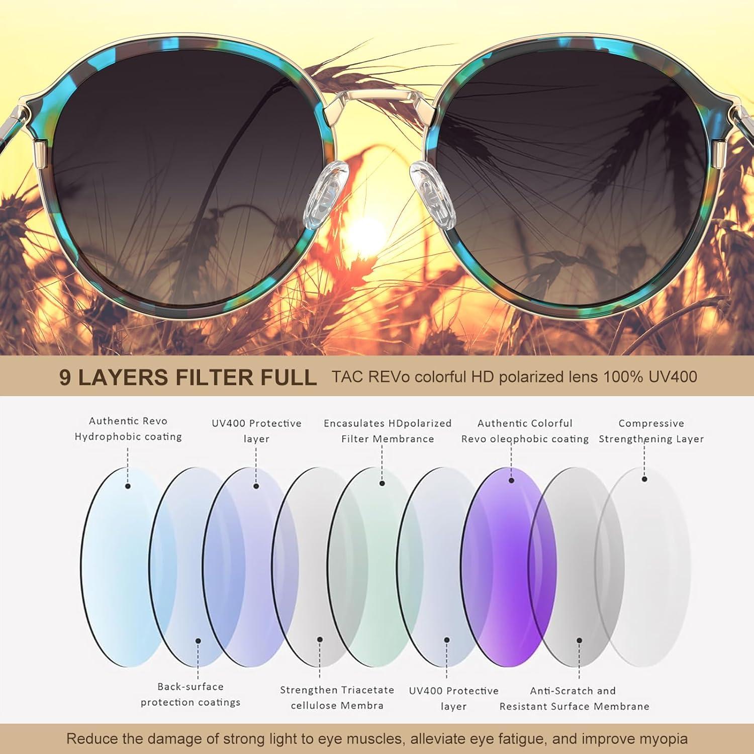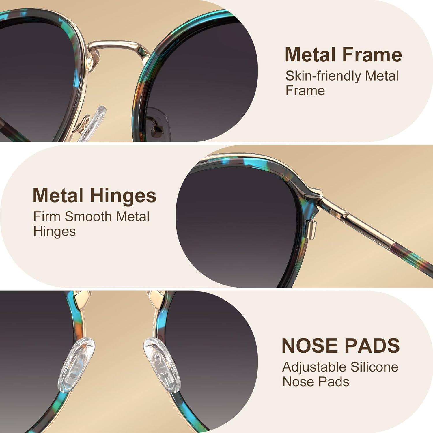 Be the first to review “CARFIA Retro Acetate Polarized Sunglasses for Women UV Protection, Fashion Metal Brow Ladies Shades Eyewears Round Sunnies(2. Blue Floral Frame and Grey Lens)”