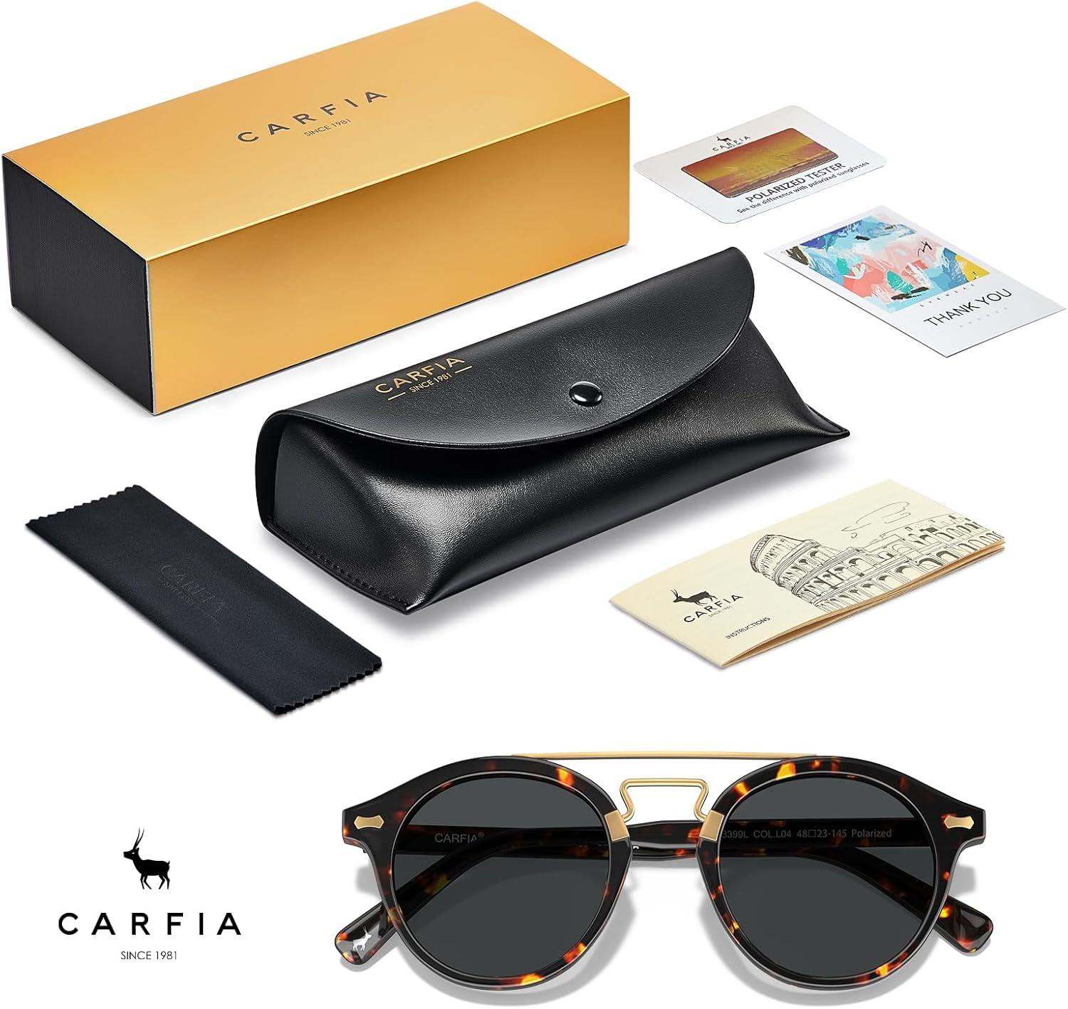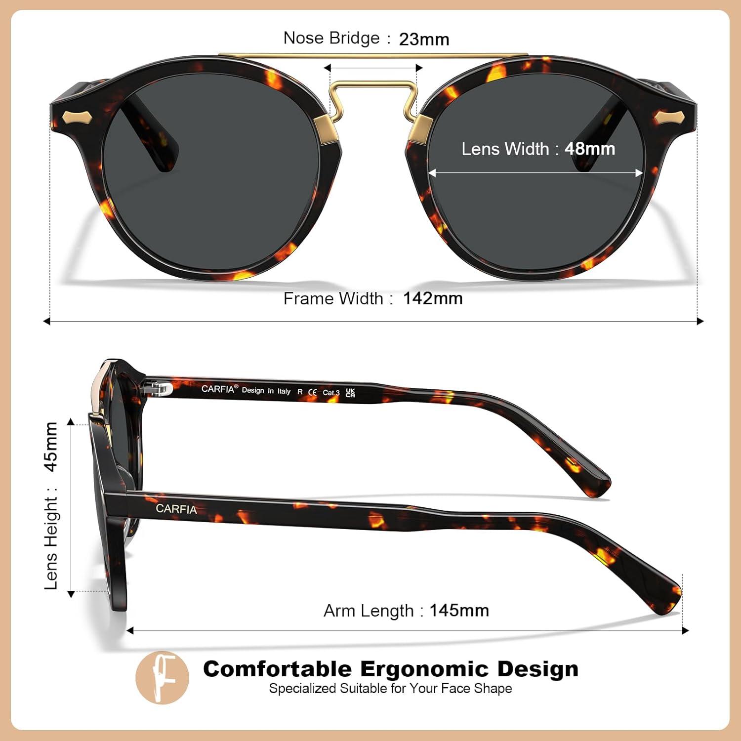 Be the first to review “CARFIA Retro Acetate Small Face Polarized Sunglasses for Men Women Trendy Metal Double Bridge Round Sun Glasses CA3399L(2. Tortoise Frame Gray Lenses)”