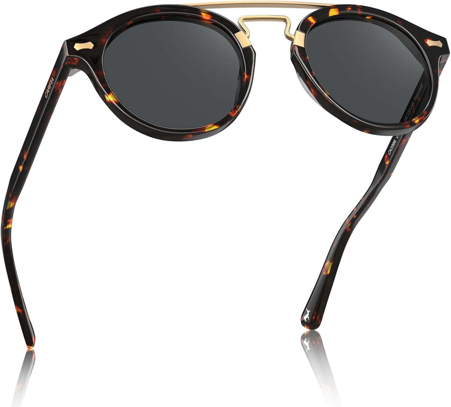 imageCARFIA Retro Acetate Small Face Polarized Sunglasses for Men Women Trendy Metal Double Bridge Round Sun Glasses CA3399L1 Black Frame Gray Lenses
