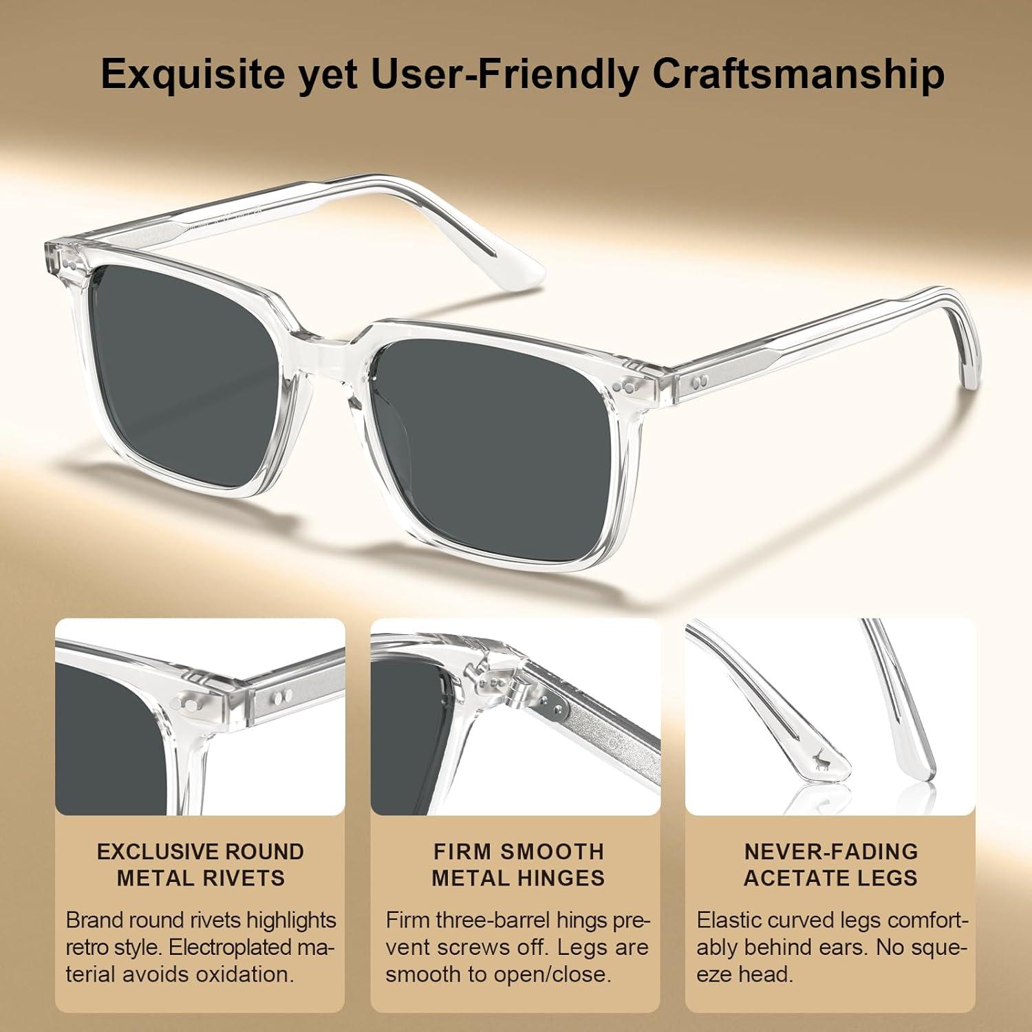 Be the first to review “CARFIA Retro Cool Acetate Sunglasses for Men Polarized UV Protection, Trendy Square Male Sunnies Outdoor Driving Eyewears(4. Transparent Frame Grey Lens)”