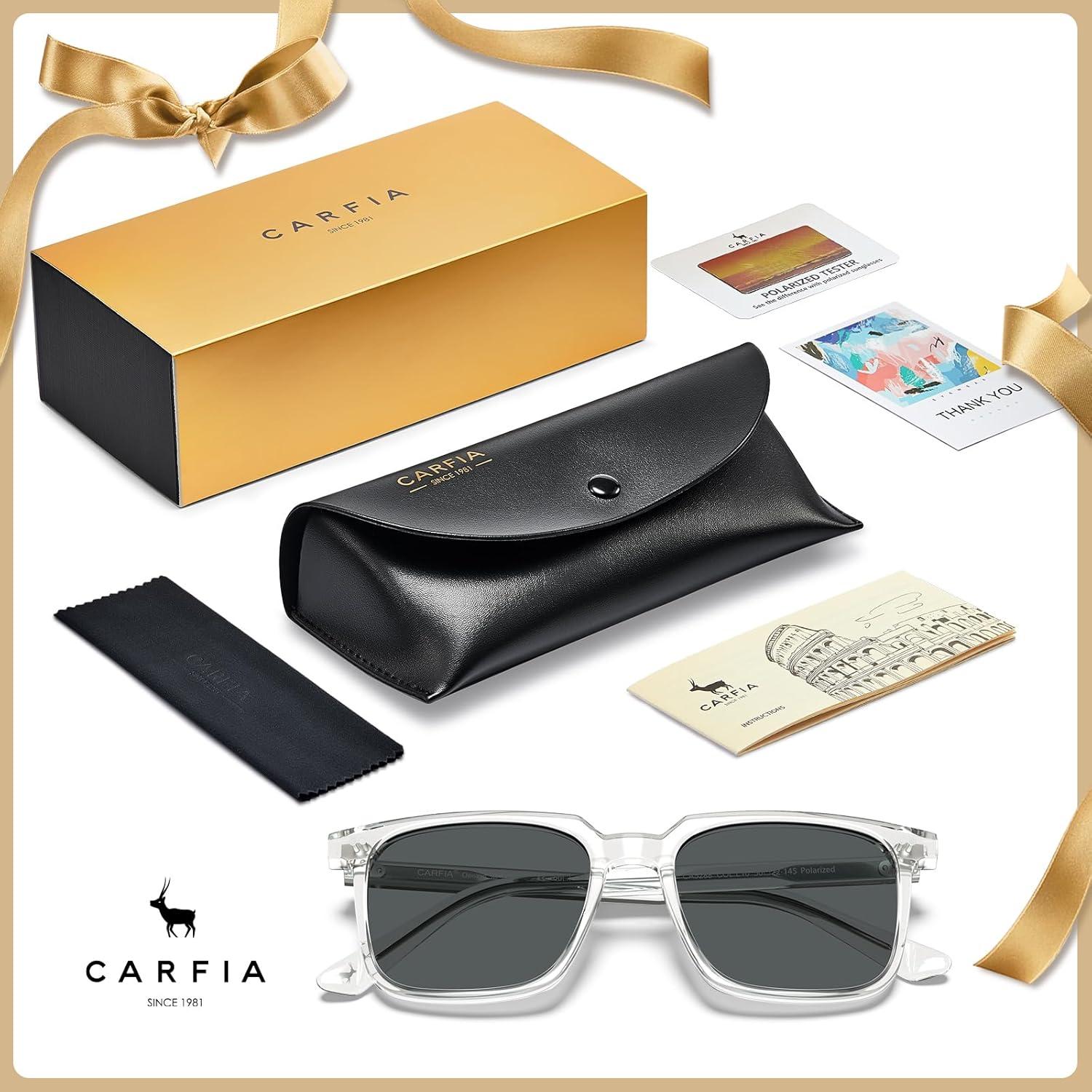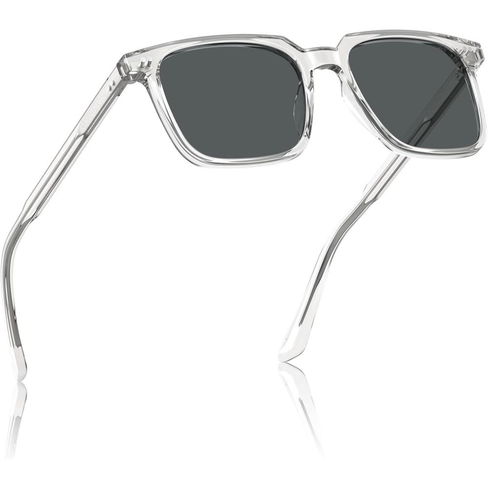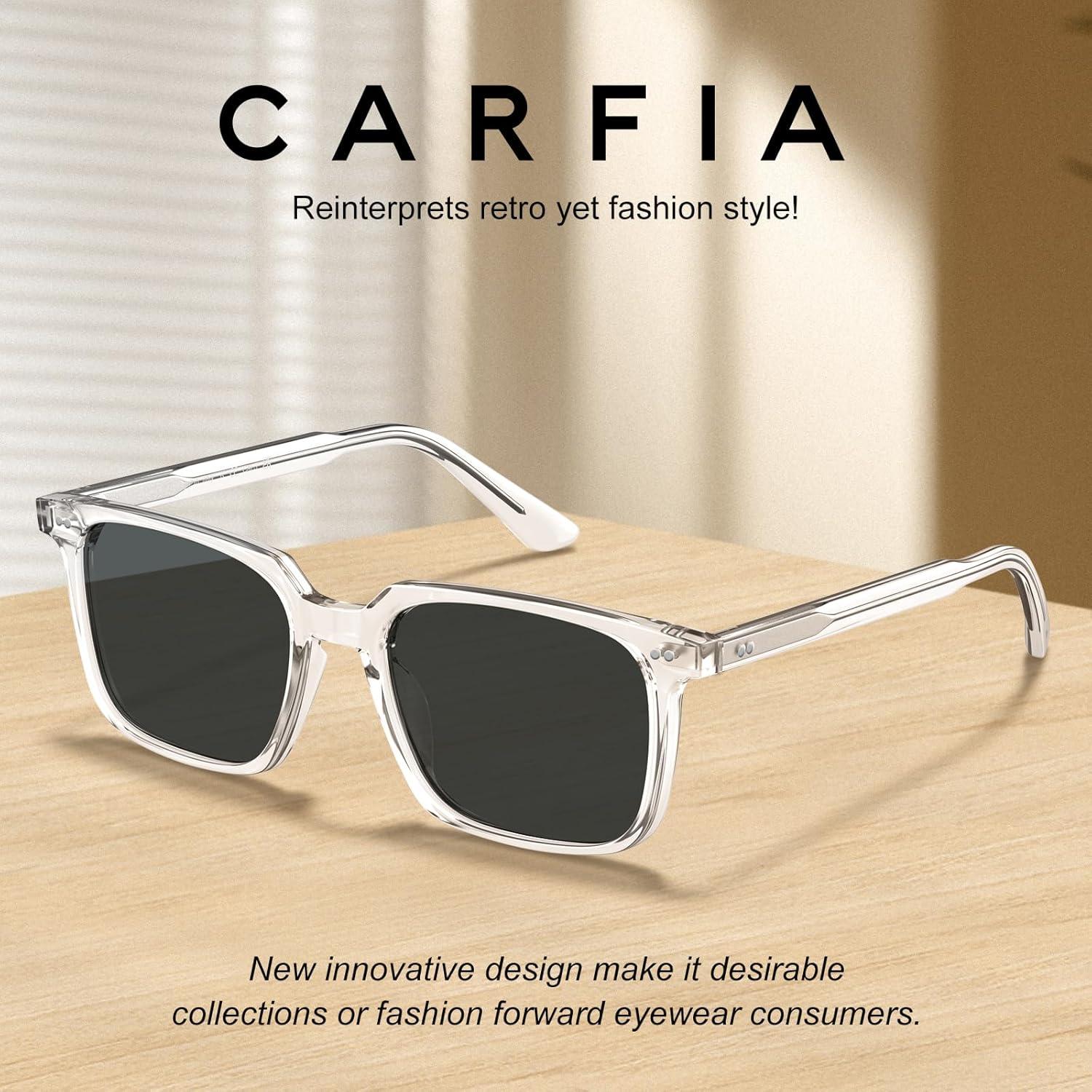 imageCARFIA Retro Cool Acetate Sunglasses for Men Polarized UV Protection Trendy Square Male Sunnies Outdoor Driving Eyewears4 Transparent Frame Grey Lens