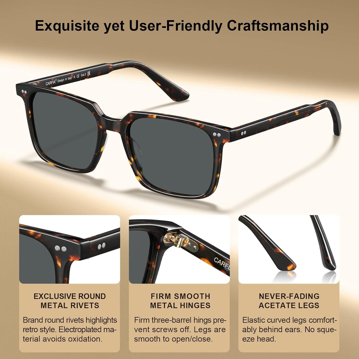 Be the first to review “CARFIA Retro Cool Acetate Sunglasses for Men Polarized UV Protection, Trendy Square Male Sunnies Outdoor Driving Eyewears(6. Red Tortoise Frame Grey Lens)”