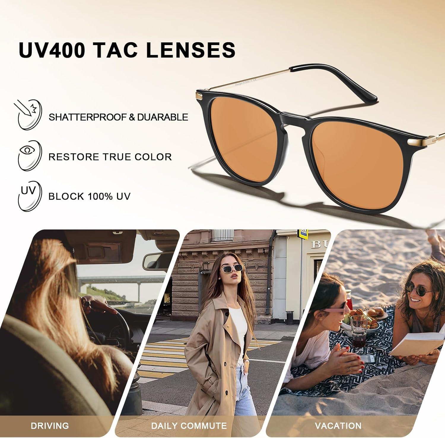 imageCARFIA Retro Lightweight Polarized Sunglasses for Women UV Protection Square Ladies Sunnies Outdoor Driving Eyewears CA32R23 Black Frame Orange Lens