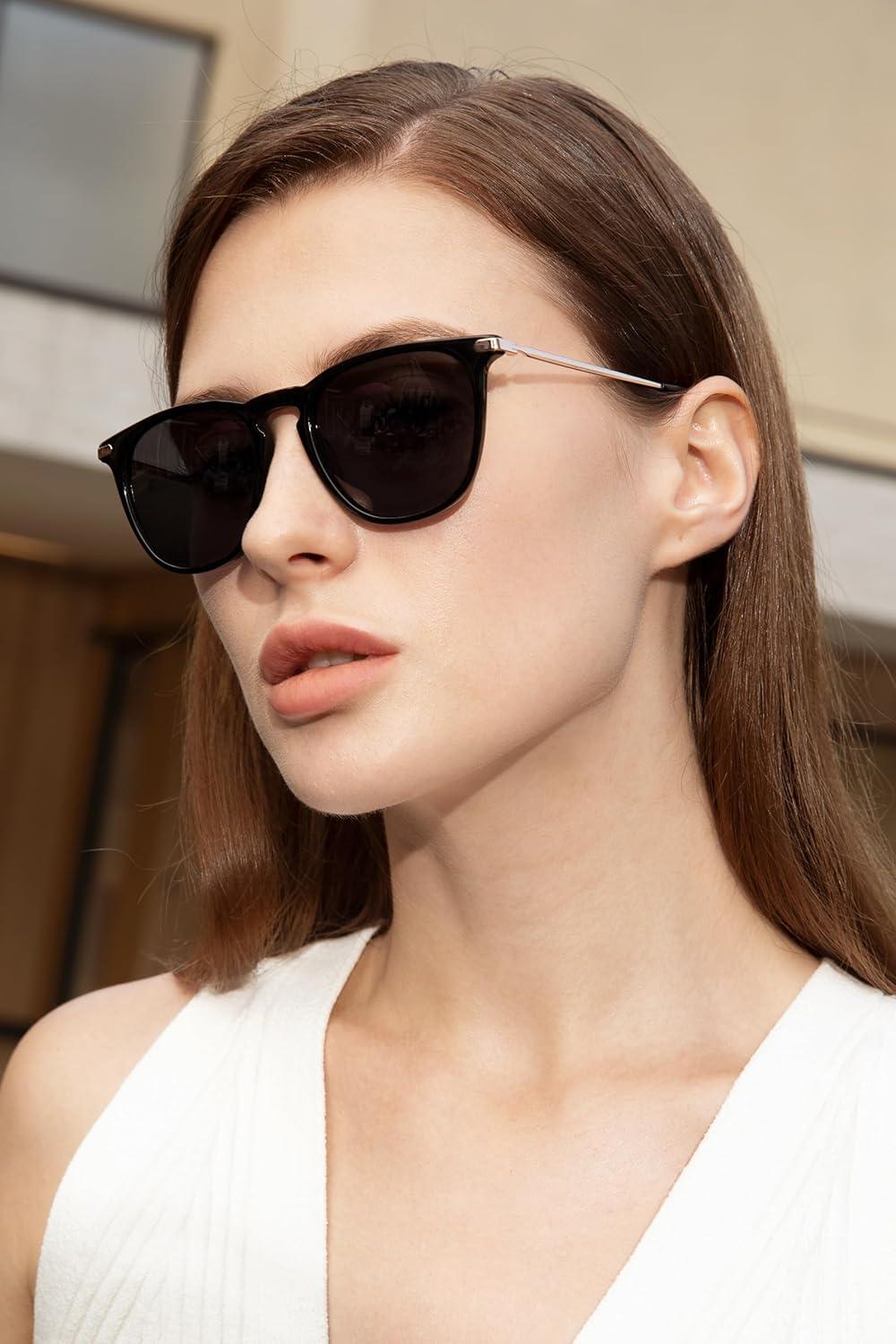 imageCARFIA Retro Lightweight Polarized Sunglasses for Women UV Protection Square Ladies Sunnies Outdoor Driving Eyewears CA32R2 Black Frame Grey Lens