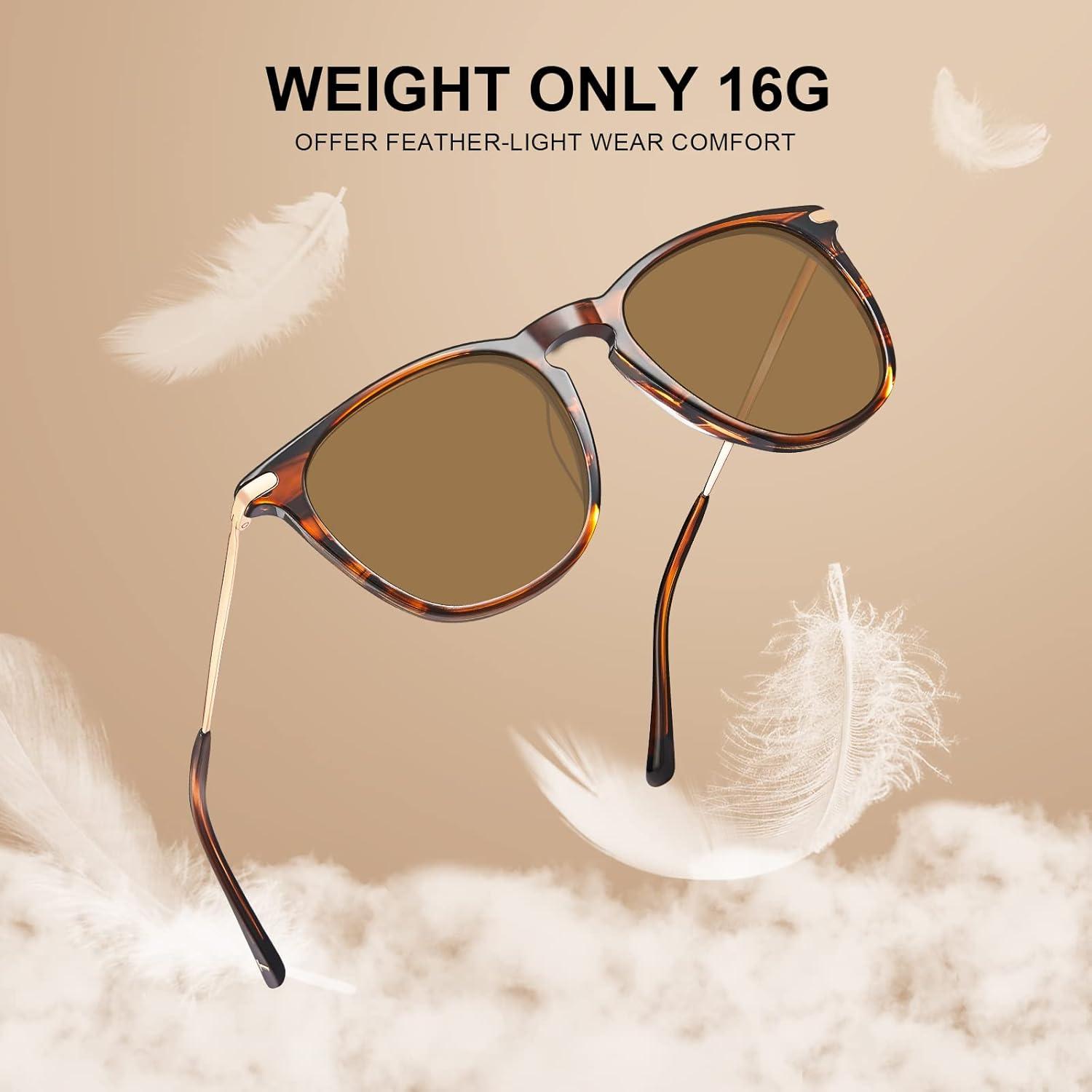 CARFIA Retro Lightweight Polarized Sunglasses for Women UV Protection, Square Ladies Sunnies Outdoor Driving Eyewears CA32R(4. Polished Tortoise Frame Brown Lens)