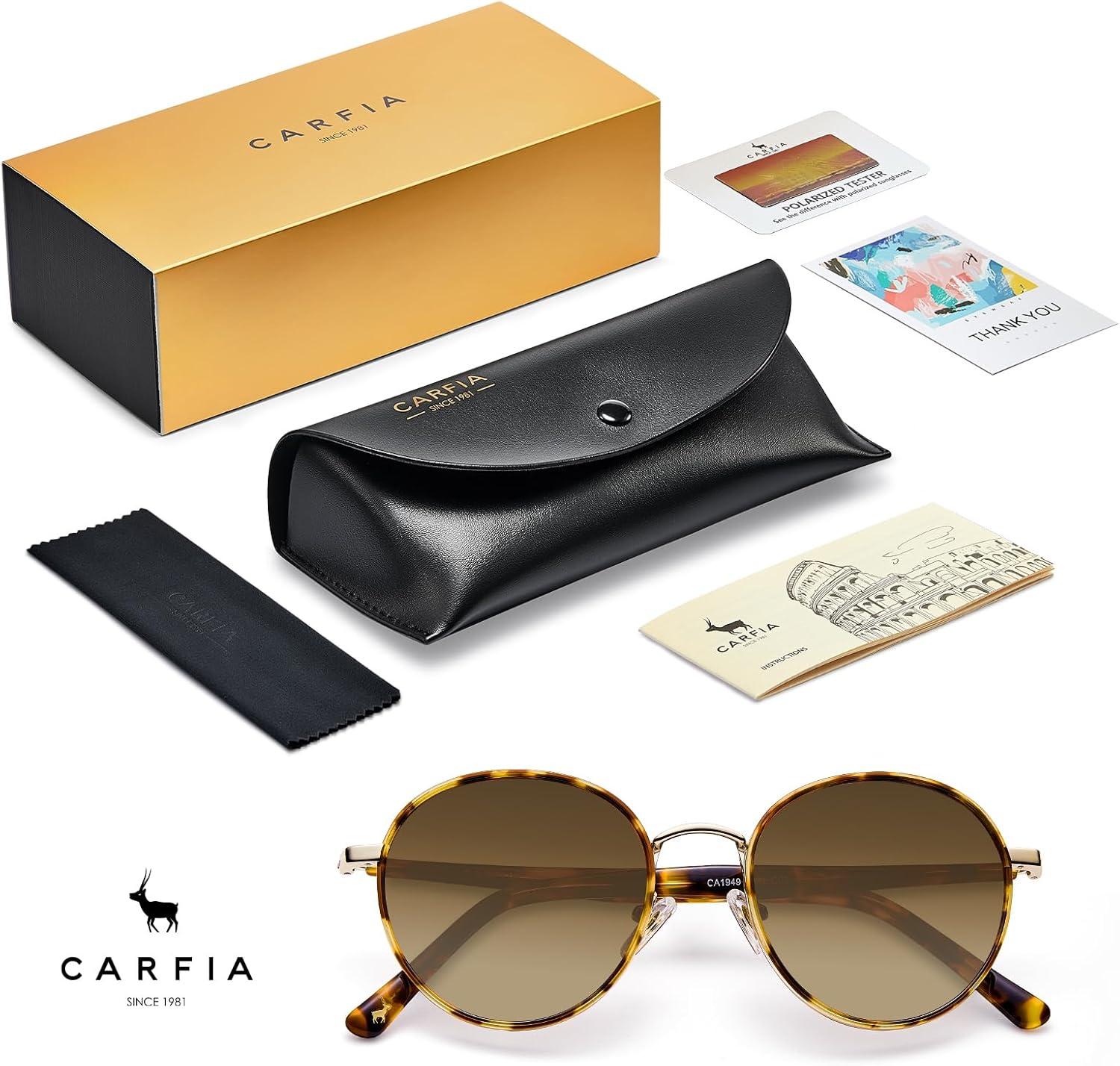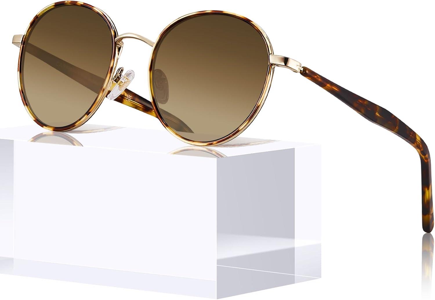 CARFIA Retro Round Polarized Sunglasses for Women UV Protection Acetate Arms Metal Frame Driving Glasses(C: Brown Tortoise Frame / Brown Gradient Lens)