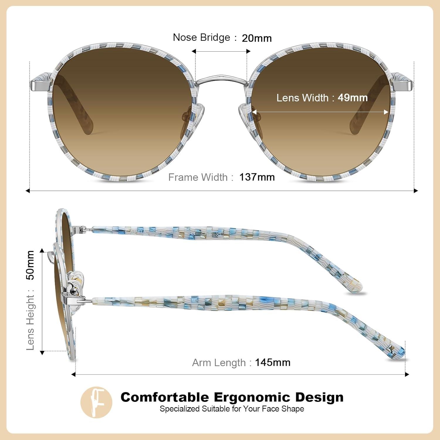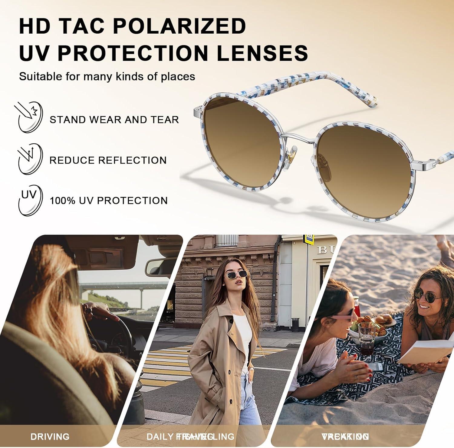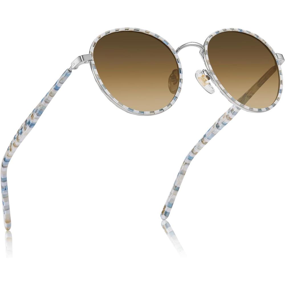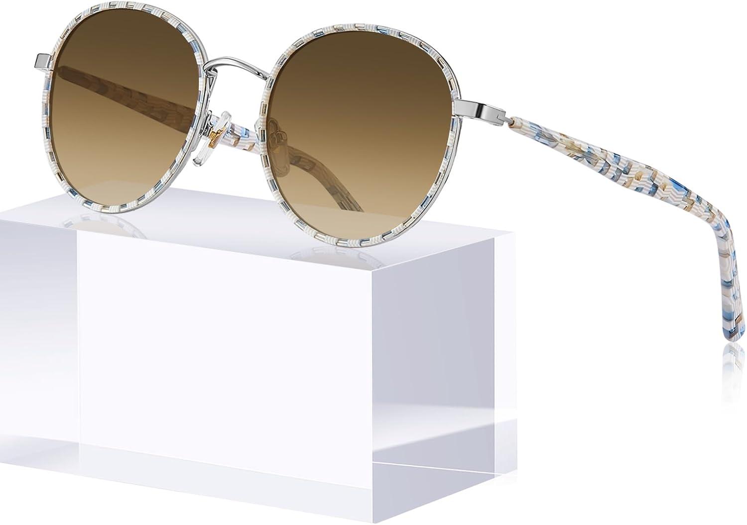 image:imageCARFIA Retro Round Polarized Sunglasses for Women UV Protection Acetate Arms Metal Frame Driving GlassesC Brown Tortoise Frame  Brown Gradient Lens