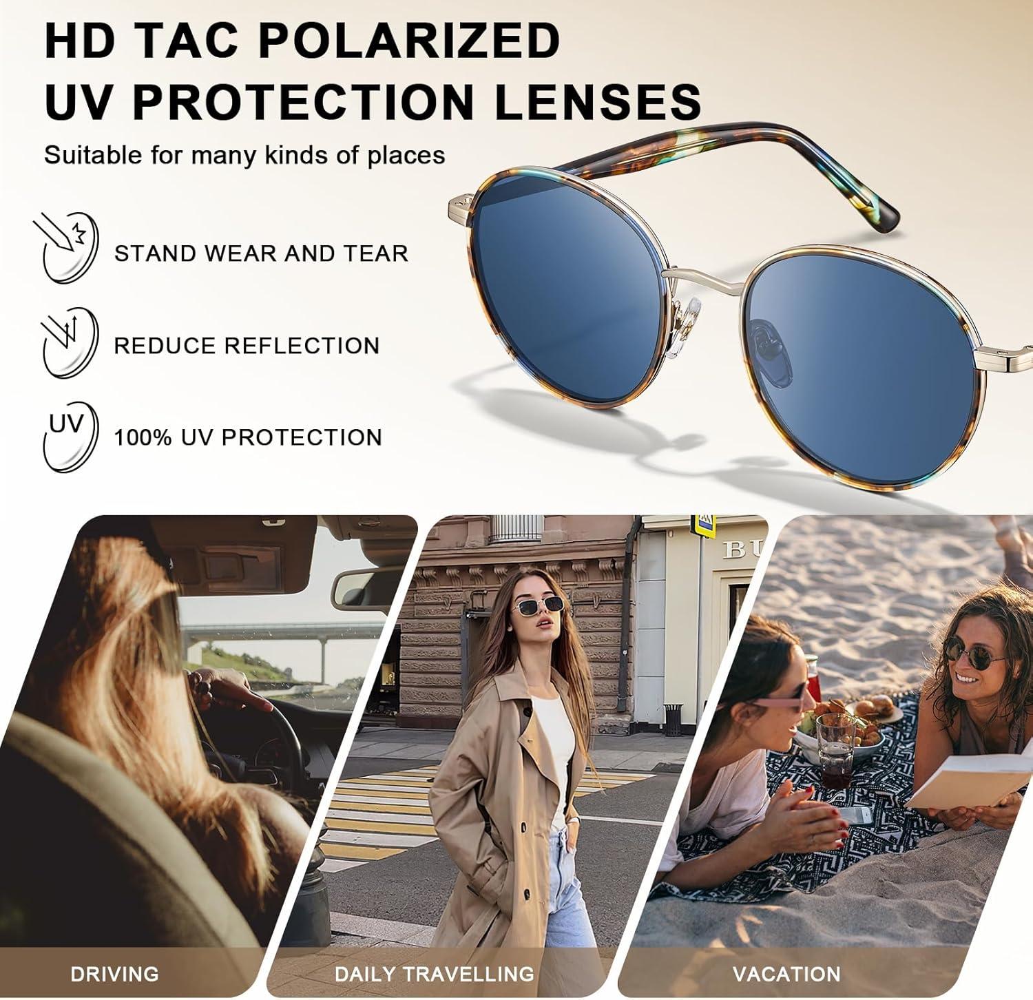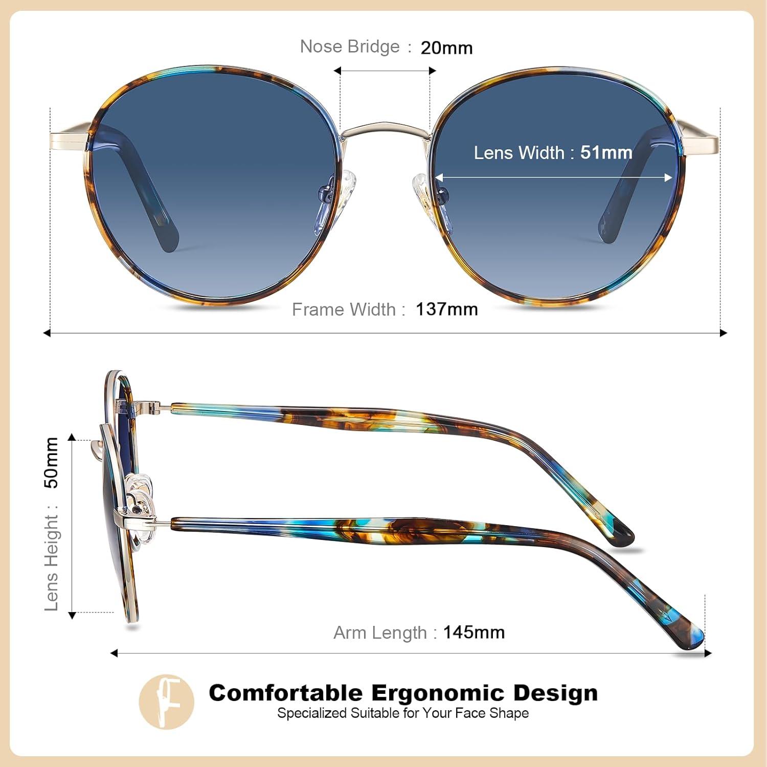 Be the first to review “CARFIA Retro Round Polarized Sunglasses for Women UV Protection Acetate Arms Metal Frame Driving Glasses(F: Blue Tortoise Frame / Blue Gradient Lens)”