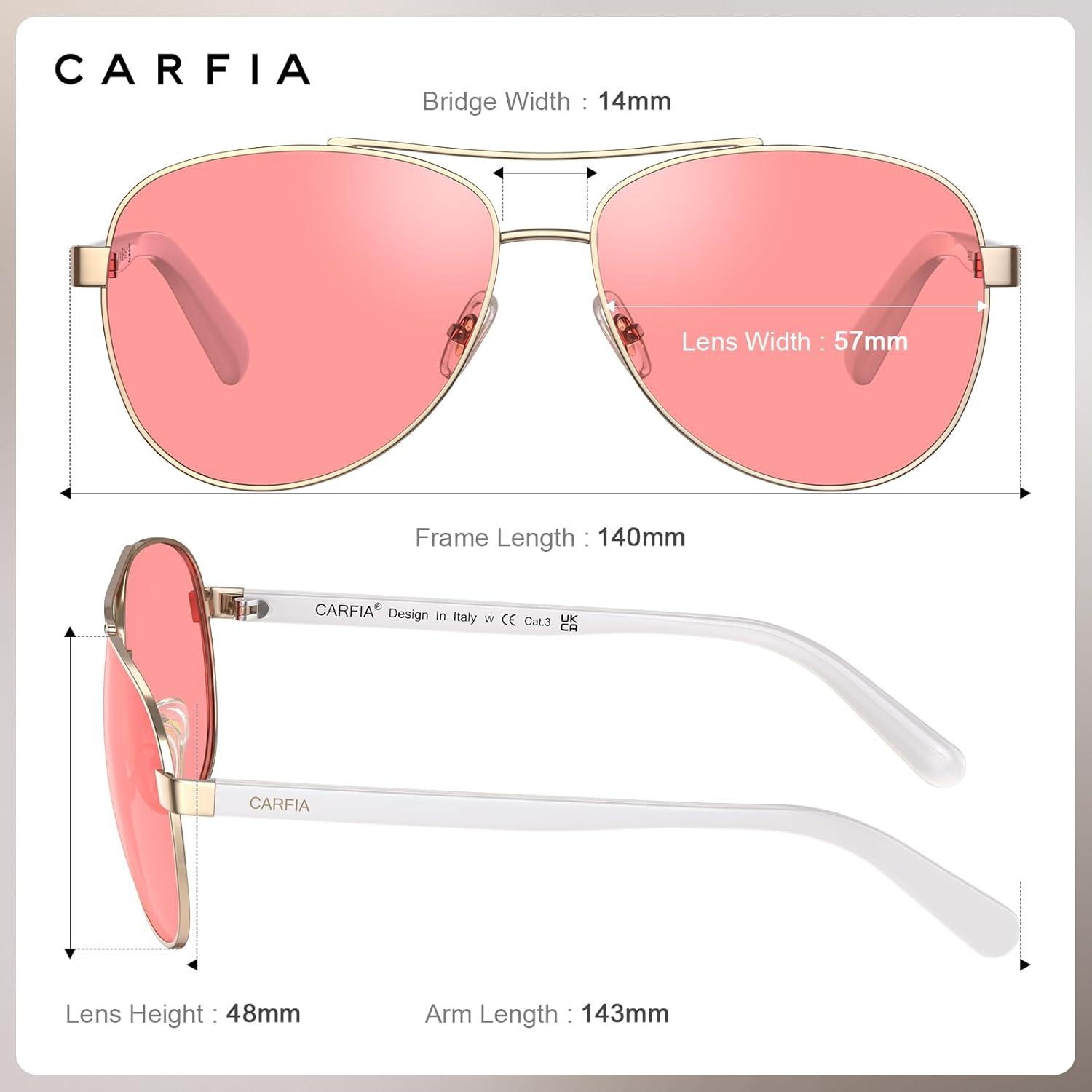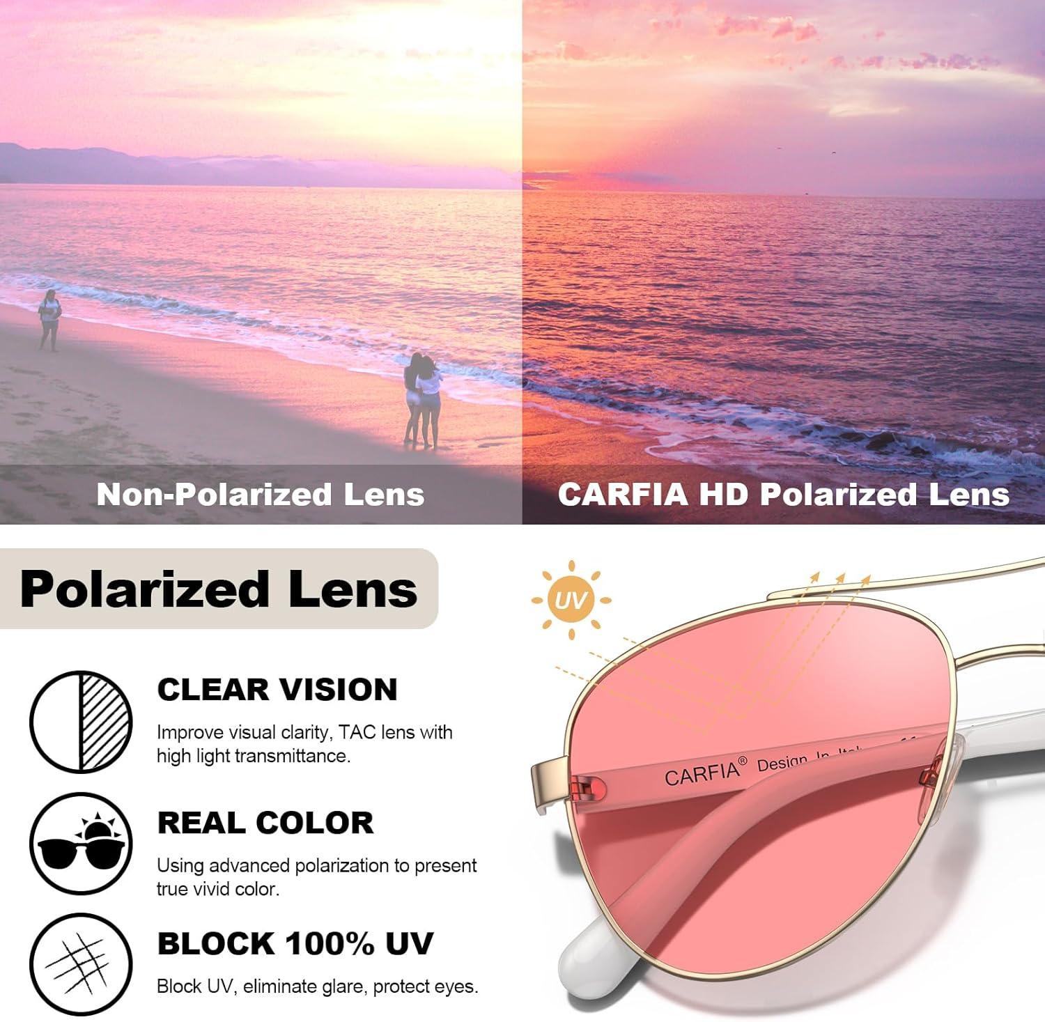 Be the first to review “CARFIA Retro Trendy Pilot Sunglasses for Women Polarized UV Protection, Lightweight Outdoor Driving Lady Sunnies Metal Frame(5-1. Gold Frame Pink Lens)”