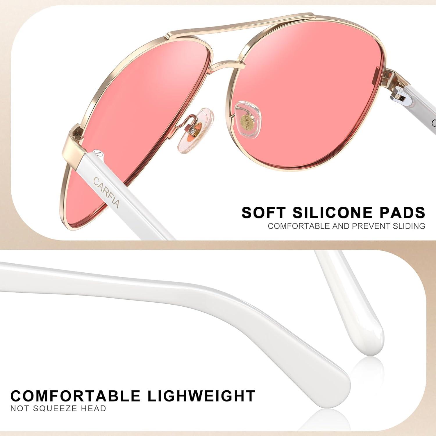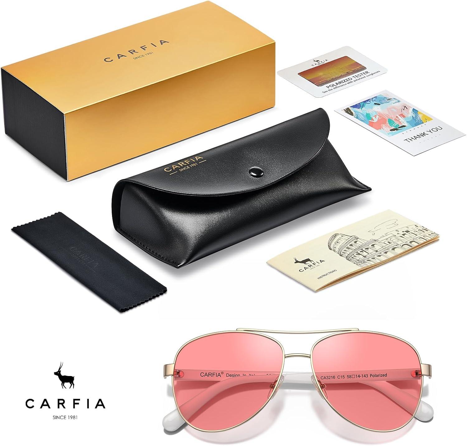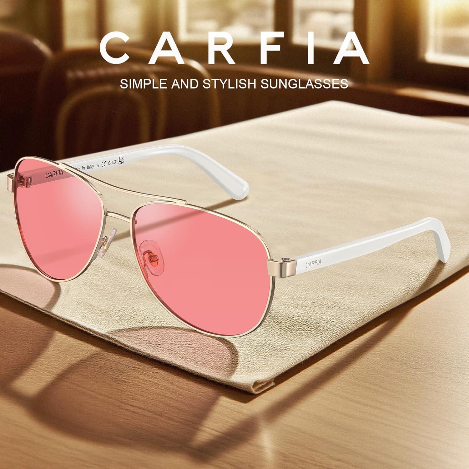 imageCARFIA Retro Trendy Pilot Sunglasses for Women Polarized UV Protection Lightweight Outdoor Driving Lady Sunnies Metal Frame51 Gold Frame Pink Lens