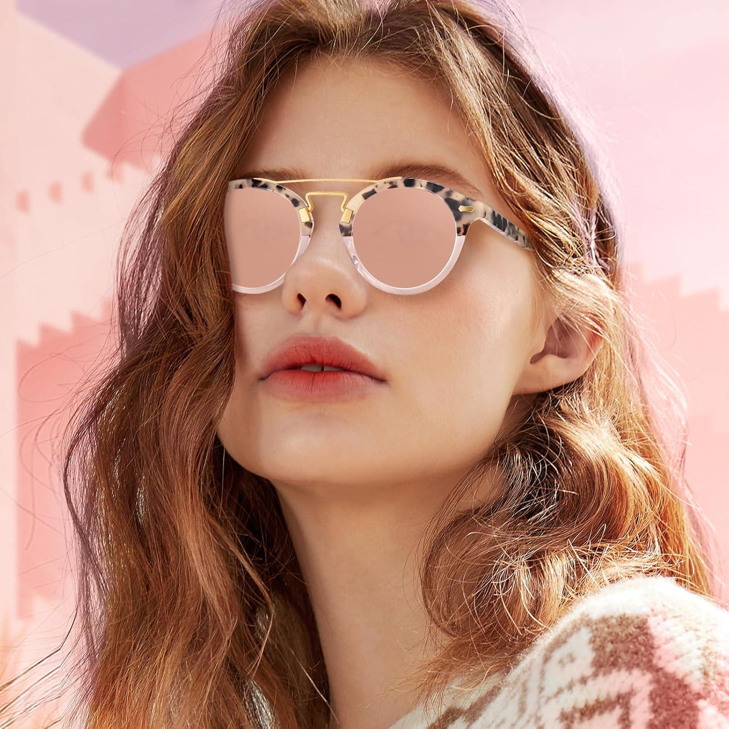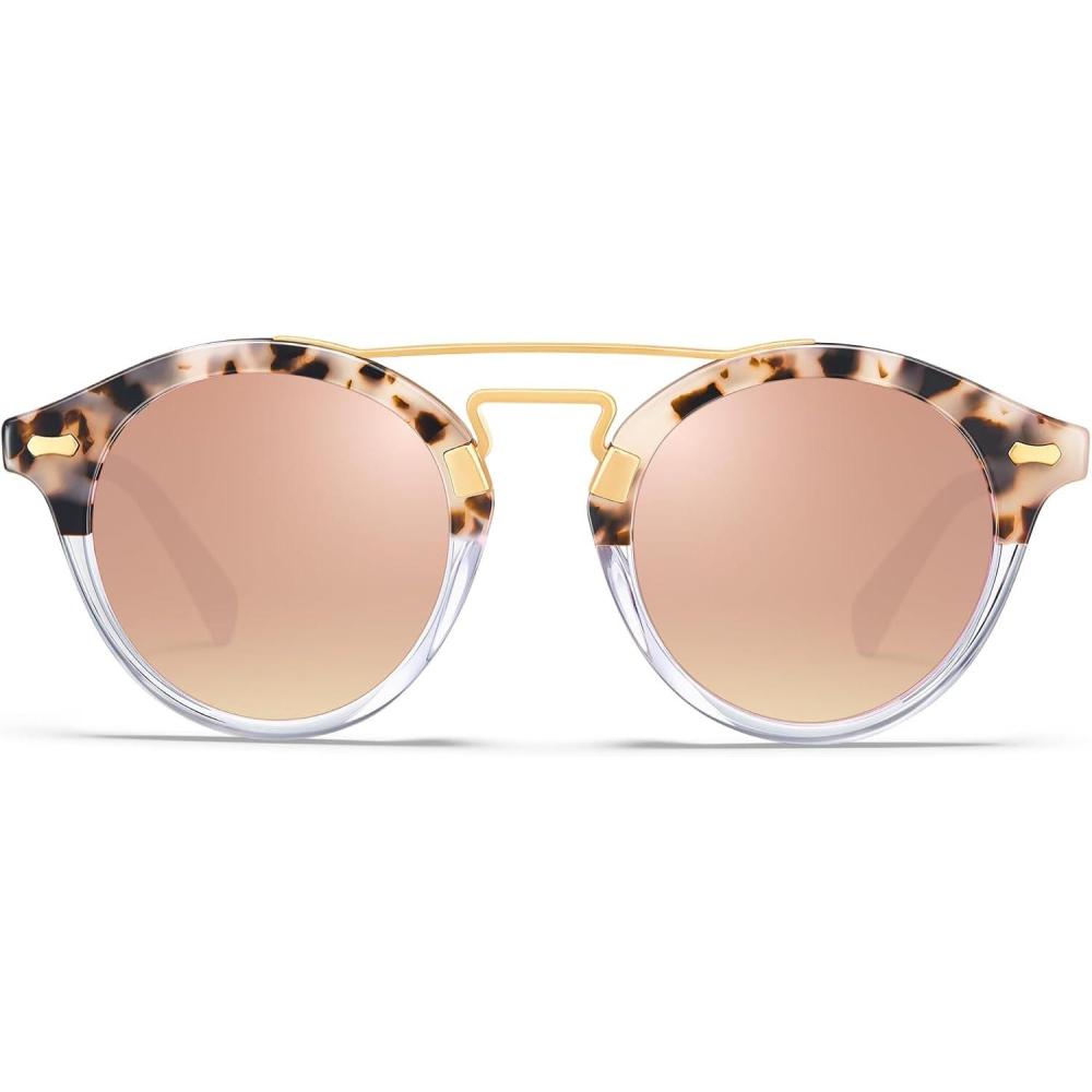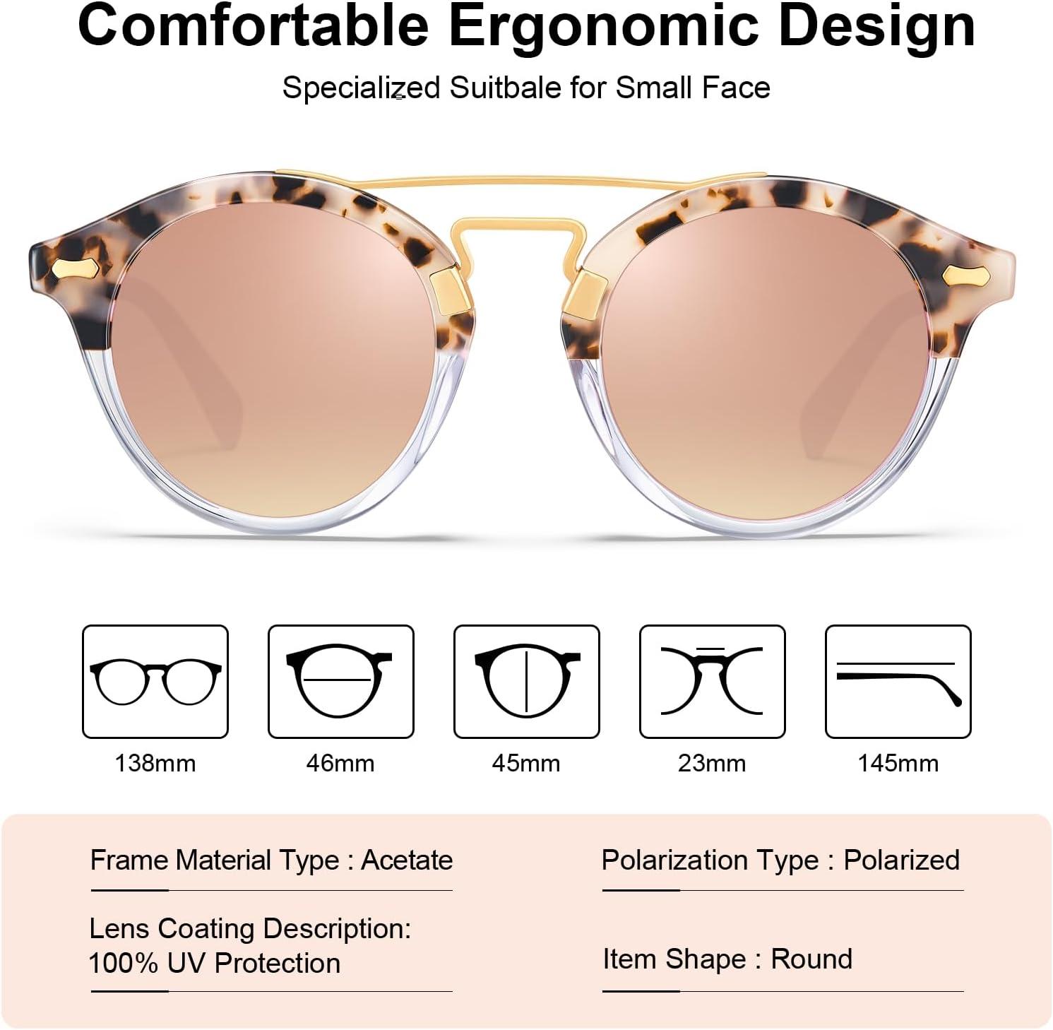 Be the first to review “CARFIA Small Face Acetate Double Bridge Sunglasses for Women Polarized UV Protection, Retro Metal Brow Eyewears Round Sunnies(7. Pink Tortoise Frame Pink Mirrored)”